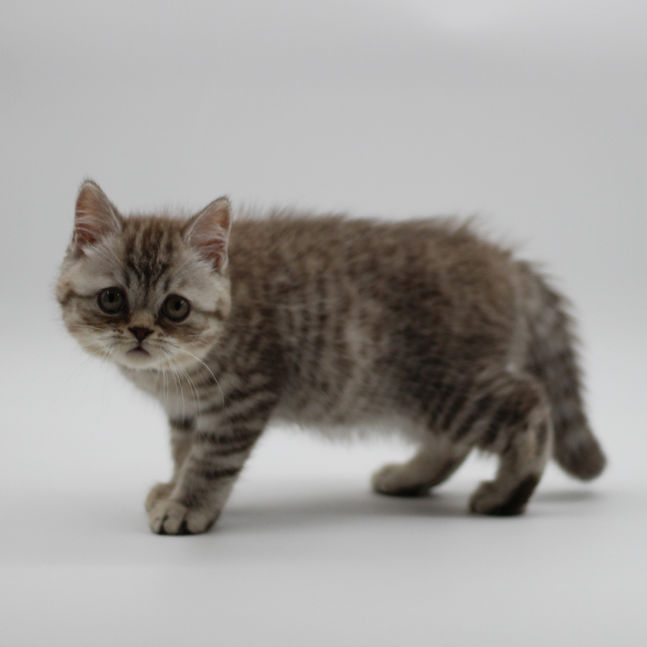 Valentino is a male chocolate silver mackerel tabby Scottish Straight. He will have copper eyes as an adult. He was born on April 17, 2024 and will be ready to go to his new home in mid August. Valentino will be neutered, up-to-date on vaccinations, microchipped, and comes with a 5-year genetic health guarantee.